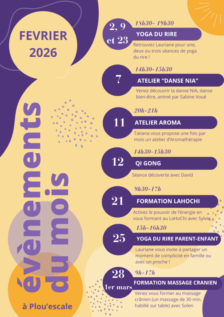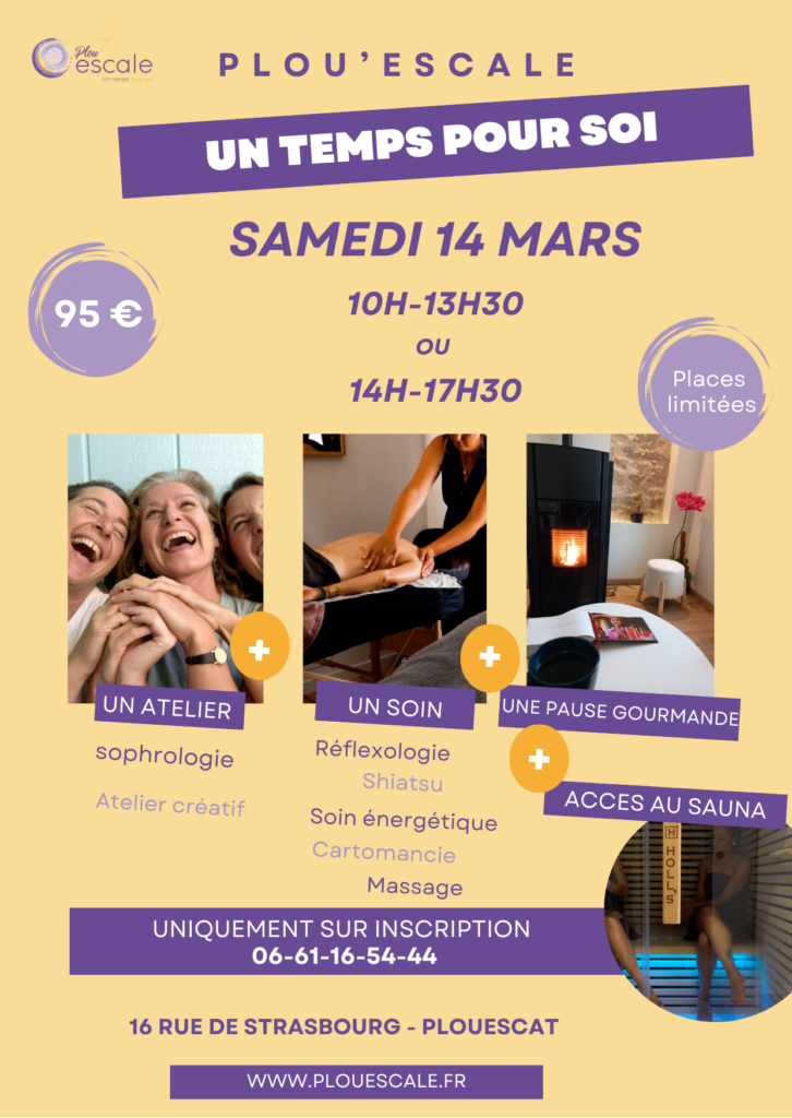 Journรฉe bien-รชtre ยซย Plou’escale, un temps pour soiย ยป : samedi 14 mars de 10h ร 13h30 et de 14h ร 17h30