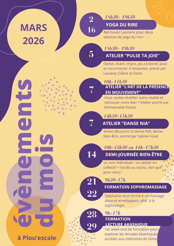Après le succès des deux premières éditions de « 𝐏𝐥𝐨𝐮’𝐞𝐬𝐜𝐚𝐥𝐞, 𝐮𝐧 𝐭𝐞𝐦𝐩𝐬 𝐩𝐨𝐮𝐫 𝐬𝐨𝐢 » , nous reprogrammons déjà la 3ème édition pour le 14 mars 2026 🤗