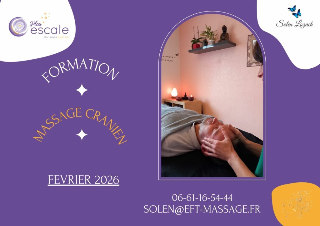 En février 2026 (me consulter pour les dates), venez vous former au 𝐦𝐚𝐬𝐬𝐚𝐠𝐞 𝐜𝐫â𝐧𝐢𝐞𝐧 à Plou’escale, le centre de bien-être pluridisciplinaire de Plouescat, animé par Solen Lozach, praticienne psyschocorporelle à @EFT et massages bien-être.