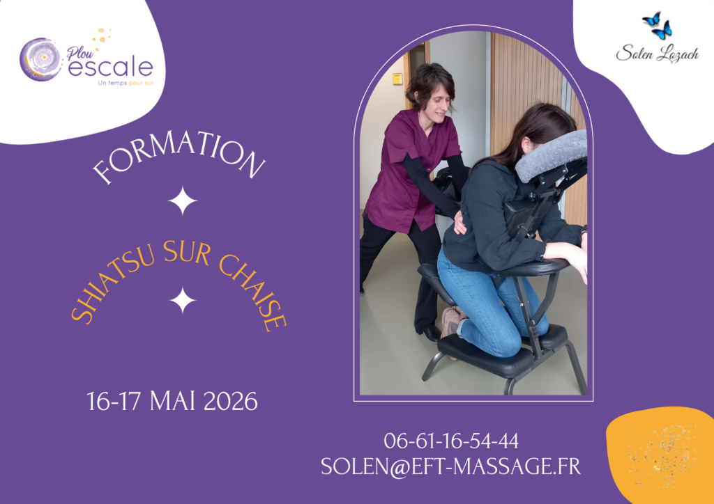 Les 23 et 24 mai 2026, venez vous former au 𝐦𝐚𝐬𝐬𝐚𝐠𝐞 𝐬𝐡𝐢𝐚𝐭𝐬𝐮 𝐬𝐮𝐫 𝐜𝐡𝐚𝐢𝐬𝐞 à Plou’escale, le centre de bien-être pluridisciplinaire de Plouescat, animé par Solen Lozach, praticienne psyschocorporelle.