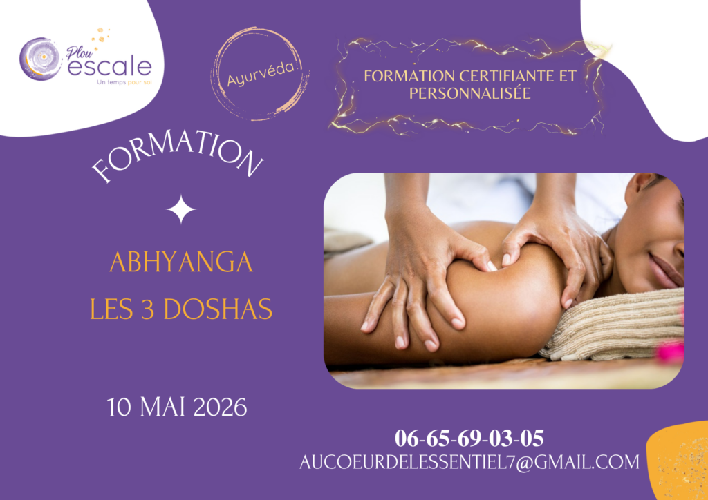 🌿✨ Formation certifiante Abhyanga personnalisée- les 3 doshasApprenez à maîtriser l’Art du Massage Abhyanga et développez une pratique professionnelle alignée, naturelle et profondément transformatrice.