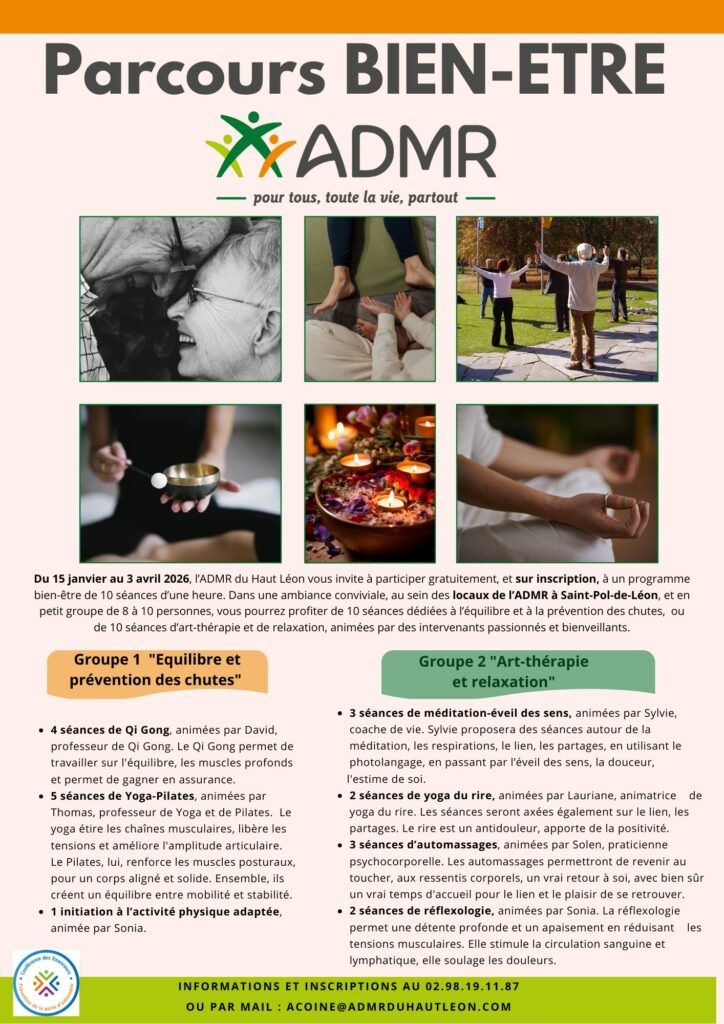 Intervention au sein de l’ADMR du Haut Léon auprès des bénéficiaires (janvier à avril 2026, 20 séances, 6 intervenants)
